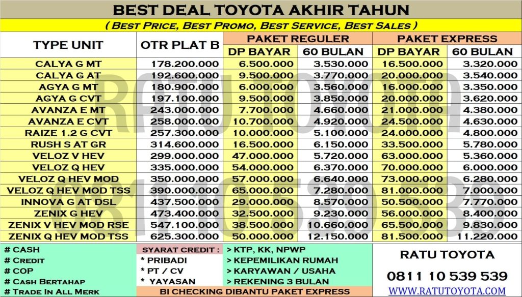 Ratutoyota.com - Official Website Dealer Resmi Tunas Toyota Hayam Wuruk, Jakarta Barat, kami memberikan segala kemudahan dan kepuasan pelanggan untuk memilih mana varian mobil yang diinginkan. Menjadi prioritas utama kami untuk menciptakan kenyamanan pelanggan.