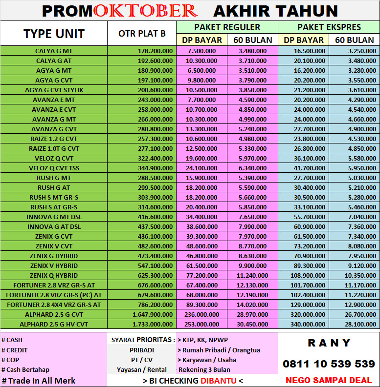 | 1.0T G CVT ONE TONE | IDR 276.800.000 |
